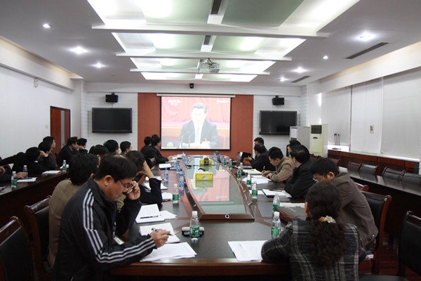 11月13日下午,校党委中心组全体成员在视频会议室集中收看了中央电视台播报的中国共产党第十八届三中公报录像,之后,校党委书记袁洪志谈了个人学习体会。他说,党的十八届三中全会精神明确了全面深化改革的总目标,是全面建成小康社会的一次总动员,对指导我国未来发展具有重大意义,今天中心组学习只是初步的,下一步还要进一步深化学习,要一个专题一个专题地深入学习。他还就学校党建工作创新、加强思想政治工作、加强二级领导班子建设提出了要求。