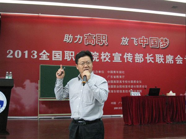 11月22日,我校党委书记袁洪志受全国职业院校宣传部长联席会议的邀请,专程赴广东佛山在2013全国职业院校宣传部长联席会年会上做报告。
