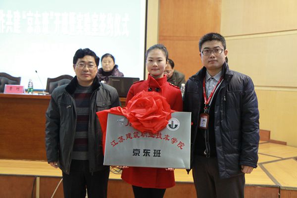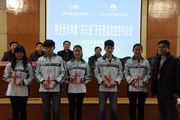 随后,沈士德和曹珂为“京东班”揭牌,曹珂总经理为“京东班”学员颁发了京东企业文化读本。签约仪式结束后,校企双方领导与“京东班”全体同学亲切合影。(校企合作办公室 赵梅)