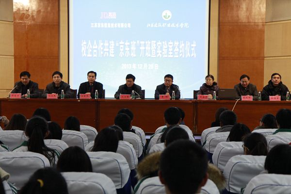 沈士德代表学校向支持学校建设与发展的江苏京东信息技术有限公司表示诚挚的谢意,向“京东班”的成立表示热烈的祝贺。他指出,京东班成功开班,是我校与江苏京东信息技术有限公司强强联合、校企合作迈出的重要一步。学校与京东信息公司的合作大门已经打开,今后,校企双方还将在人才培养模式改革、教育教学方法创新、就业基地建设、师资队伍建设等诸多领域推进合作,不断深化校企双方友谊,不断提升校企双赢成效,描绘出更加绚丽的校企合作画卷。