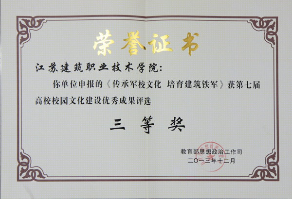 近日,教育部公布了第七届全国高校校园文化建设优秀成果获奖名单,我校申报的校园文化建设成果《传承军校文化,培育建筑铁军——华体会体育推进“半军事化”实践育人》从众多申报高校中脱颖而出,荣获优秀成果三等奖,这也是我校首次获此殊荣。多年来,我校立足军校传统打造“军校”文化载体,立足第二课堂开展丰富多彩的国防教育,实施半军事化管理规范日常文明行为,强化军事训练培养适应行业企业需求的“建筑铁军”,落实政策保障积极鼓励学生投身国防事业,使军校文化在推动学校事业发展、培养高素质技术技能人才方面发挥了文化推动和引领作用,成为我校独具特色的校园文化。