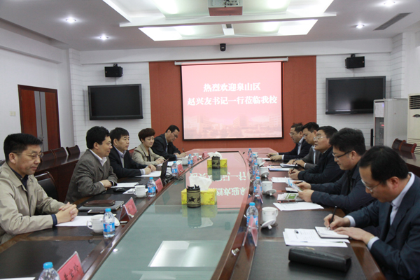 4月27日下午,徐州市泉山区区委书记赵兴友,区委常委、副区长李松和区委办公室、区委宣传部、区科技局负责人一行来到我校,共商校地合作相关事宜。我院院长、党委副书记吴光林,党委副书记、纪委书记张登宏,副院长季翔、梁惠和相关职能部门负责人参加了座谈交流。