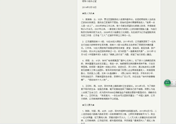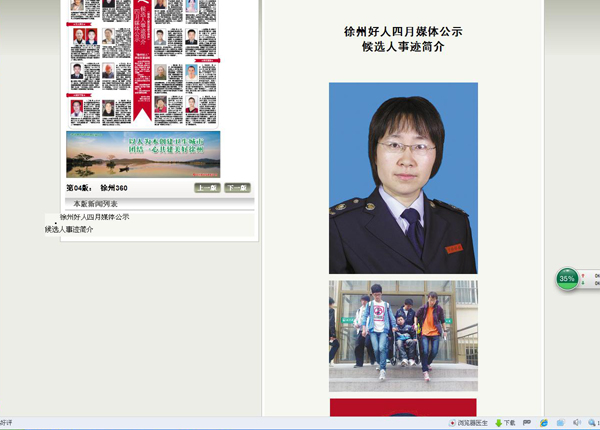 5月18日的《徐州日报》公示了四月份的“徐州好人”,我校控制11-1班被选定为徐州四月份“好心人”候选人,请于5月18日至27日至徐州市文明网(http://fashion.cnxz.com.cn/2014/ddmf/index.asp)为他们投上一票。