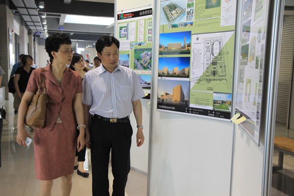 我校党委书记吴光林陪同与会人员参观建筑技术馆