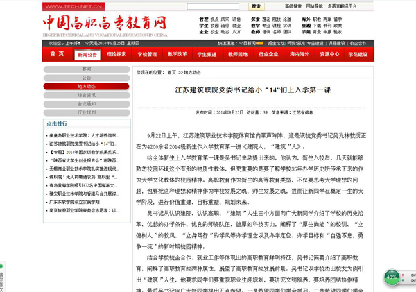 给全体新生上入学教育第一课是吴书记主动提出来的,他认为,新生入校后,几天就能够熟悉校园环境这个有形的物质性载体,但更重要的是要了解学校35年办学历史所传承下来的作为大学文化载体的校园精神。高职教育作为新生的高等教育类型,不仅要思考大学理想的问题,也要把这种理想和精神作为学校发展之魂、师生发展之魂,进而让新同学在奠定一生的大学阶段,进行价值重建、目标重塑、规划未来。