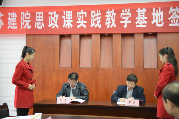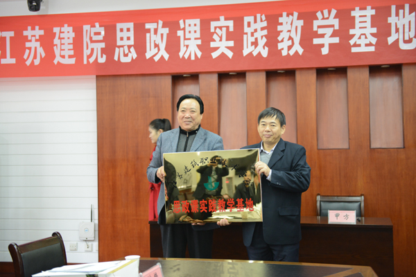 校党委副书记、纪委书记张登宏教授,原徐州市文联副主席王勇、徐州汉画像石艺术馆馆长梁勇、淮安周恩来纪念馆副馆长王旭馗、“中国十佳小康村”徐州市贾汪区马庄村党委书记孟庆喜、徐州汉闻慈孝文化传播有限公司总经理李孝天以及我校相关职能部门负责同志、思政部全体教师参加了此次活动。张登宏分别与四家单位代表签订江苏建院思政课实践教学基地协议,并授牌。