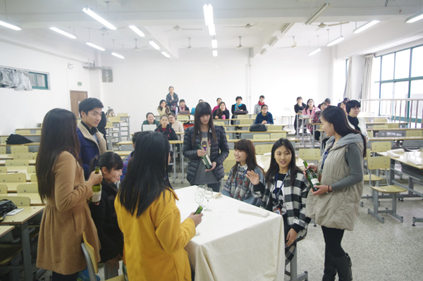 赵萌采用“全景式教学”方法,讲授了“葡萄酒服务”。课程采取实景化教学、分解式演练、真实服务、互动讲解,全体学生参与的“全景式教学”方法。课堂气氛活泼,学生完全被教师调动,每位同学不断互换角色,边学边练,在比较短的时间里,基本掌握葡萄酒的规范服务。