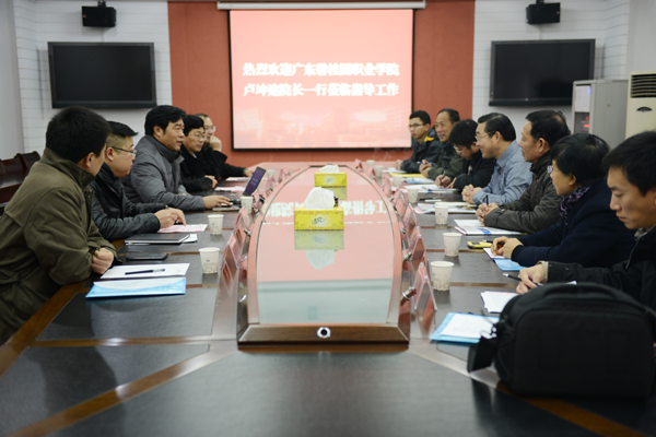 11月28日上午,在学校视频会议室,院长孙进教授接待了广东碧桂园职业学院卢坤建院长一行7人。副院长沈士德教授陪同。党政办公室、教务处、装饰设计学院等部门和二级学院负责同志参加了接待。
