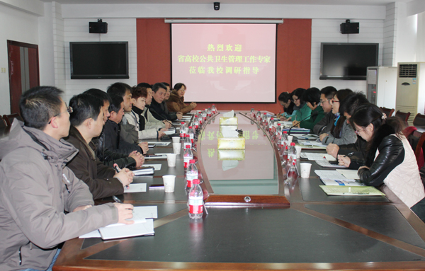 12月12日上午,江苏省教育厅体卫艺处主任古恺一行7人莅临我校调研指导公共卫生管理工作,副院长梁惠,后勤中心、校医院、学工处、宣传部、素质教育中心、教务处、团委等职能部门负责人出席了汇报会。调研分听取汇报、检查材料、现场查看、问卷调查四个步骤进行。