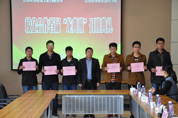 4月12日上午,我校与江苏龙典建设集团有限公司在建筑技术馆会议室举行校企合作开班仪式。我校院长孙进教授、江苏龙典建设集团有限公司董事长钱亚兵与相关职能部门、二级学院负责人参加了开班仪式。