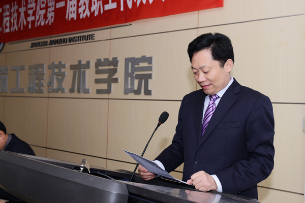 校工会主席孙世奎、建工学院领导班子全体成员和第一届教职工代表大会的正式代表参加会议。(建工学院 周厚思)