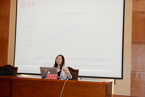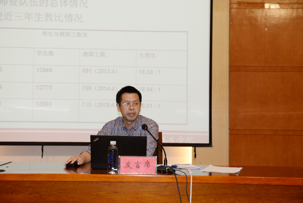 招生就业处处长宋丹萍从4方面数据解读了我校2014年招生情况,对近三年的毕业生就业数据进行了统计分析。教务处处长刘海波从9个方面对去年教学运行的基本情况进行了通报。科技处处长韩成标对2014年度我校科技工作数据进行了全面梳理和横向对比。人事处处长汪玉静针对我校的师资队伍数据也展开纵横对比,并提出了3个方面对策建议。