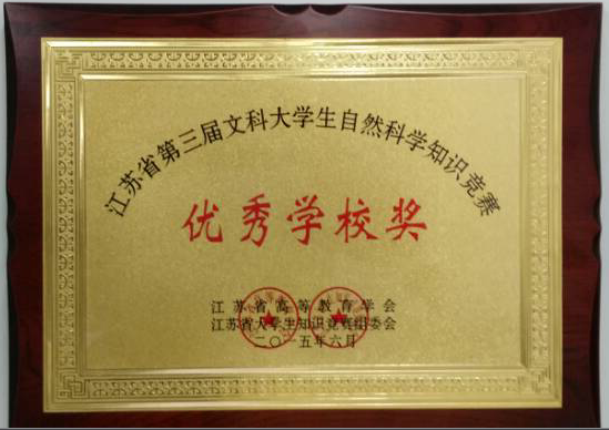 6月27日下午,江苏省第三届文科大学生自然科学知识竞赛总决赛暨颁奖典礼在南京艺术学院实验剧场举行。为了全面贯彻党和国家的教育方针,激发我校文科大学生学习自然科学知识的热情,提高文科大学生的自然科学素质,学校共组织六百名学生参加了本次知识竞赛,占在籍文科大学生总数的21.2%,最终获4个二等奖、23个三等奖、87个优秀奖,并以专科组排名第二名的好成绩获得优秀学校奖。(学工处 李珂)