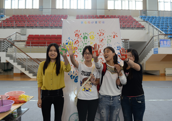 秋雨过后,我们在江苏建院相遇,一同印下青春的手印,愿明天更美好!