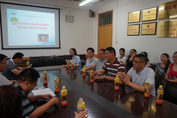 2015年7月25日,阔别学校10年的财会00-2班25位校友回到母校,学院白海云书记、唐文霞副院长,曹前、盛天松、彭培鑫、巩建信、王庆有老师,原班主任吴克林、王书明老师参加了见面座谈。
