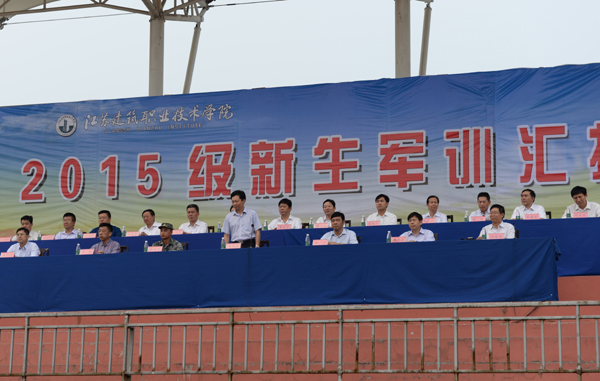 9月20日上午9时整,2015级新生军训汇报大会在西操场隆重举行。党委书记吴光林,院长、党委副书记孙进,73101部队教导员杨再祥,党委副书记、纪委书记张登宏,副院长、党委委员季翔、任留钦、曾凡远及学校相关职能部门领导、二级学院领导在主席台就座。