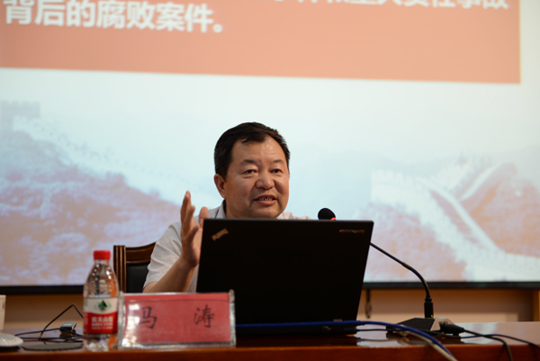 马涛的报告以“践行三严三实 忠诚干净担当”为题,紧密联系高校和徐州实际,全面分析了当前党风廉政建设和反腐败斗争的基本形势和任务,用大量详实的案例和数据,剖析腐败形成的深层原因。马涛指出,党委和纪委要认真落实“两个责任”。干部要“严”字当头,“实”字为重,做到对党忠诚,做人清清白白,敢于担当,做事规规矩矩。马涛特别强调,党员干部、教职工在践行“三严三实”上要始终保持“六心”,即对党要有忠诚之心,对组织要有感恩之心,对法律要尊崇之心,对权力要有敬畏之心,对事业要有勤勉之心,对自己要有严律之心。
