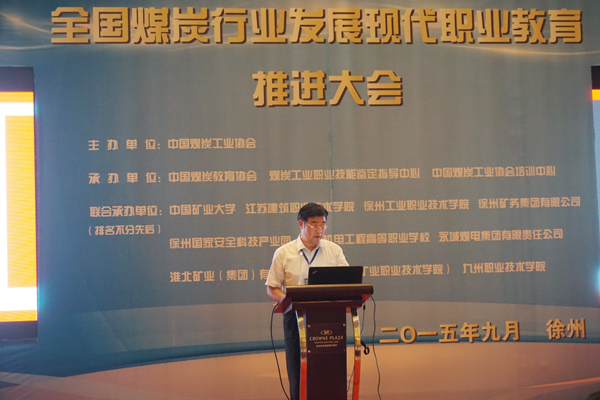9月23日-24日,中国煤炭工业协会主办的全国煤炭行业发展现代职业教育推进大会在徐州召开。全国政协委员、原国家安全监察总局副局长、中国煤炭工业协会副会长、秘书长梁嘉琨,国家煤矿安全监察局副局长宋元明,中国煤炭工业协会副会长王虹桥,教育部职业教育与成人教育司副司长王扬南,中国煤炭教育协会理事长、中国煤炭工业协会培训中心主任李增全等领导出席。院长孙进教授应邀出席并在主席台就坐。