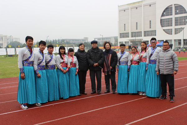亚洲射箭联合会副主席、上海体育局副局长郭蓓,中国射箭协会传统弓分会名誉主席徐开才、李淑兰与我校射艺队教练、队员合影