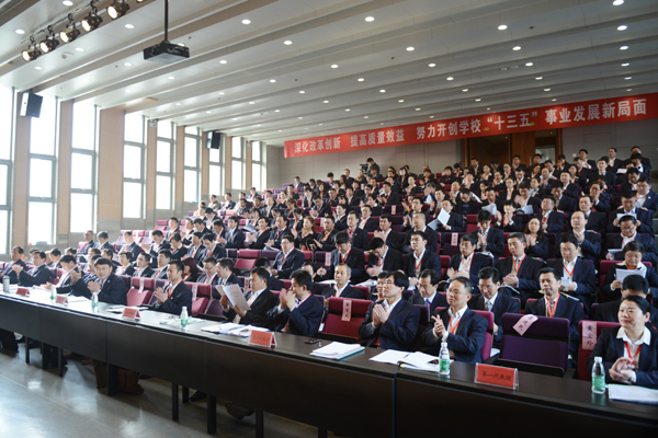 院长孙进作题为“深化改革创新 提高质量效益 努力开创学校‘十三五’事业发展新局面”行政工作报告,报告指出,过去的五年,在上级有关部门的大力支持下,在全体教职工的共同努力下,学校圆满完成了“十二五”确定的目标任务,办学实力显著增强、办学特色持续彰显,实现了把学校建设成为“实力较强、特色鲜明、同类领先的全国建筑高职名校”的战略目标。报告对学校“十三五”事业发展规划的编制情况进行了说明,并对今年的重点工作进行了部署,报告指出,2016年是学校“十三五”开局之年,学校改革发展已经站在新的历史起点上,面对新的任务和要求既需要我们抬头仰望,更需要我们埋头实干,广大干部教师要大力发扬开拓创新、奋勇争先的精神,以清晰的思路、争先的劲头和实干的业绩为学校发展建设奉献力量。