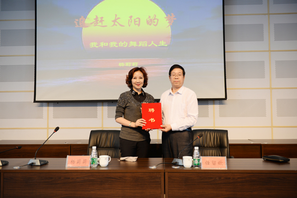 报告会上,副院长任留钦代表学校聘请杨莉莉教授担任学校大学生艺术团艺术顾问并颁发聘书。杨教授表示将对我校学生艺术团体的建设与发展加强指导,争取更加优异的成绩。(团委 陈昕)