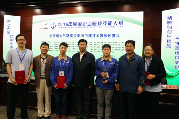 5月12日,2016年全国职业院校技能大赛高职组大气环境监测与治理技术赛项在天津现代职业技术学院开赛,来自全国各地的38支代表队参加了比赛。经过激烈的比赛争夺,我校代表队继2015年之后再获赛项总分全国第一。院长孙进教授作为该赛项执行委员会副主任出席大赛闭赛式,并为一等奖获得者颁奖。