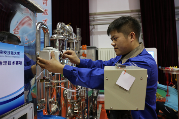 本次大赛分为理论、实操、职业素养三个部分,用时4个小时。各参赛队伍在同一个公共的大气环境监测与治理技术综合实训平台上进行,主要包括烟气处理工艺设计、自动控制程序设计、污染源配置、系统运行的处理设备(安装调试、运行维护)、pH在线监测、二氧化硫在线监测、一氧化碳在线监测、氧气在线监测、粉尘颗粒检测、烟尘采样以及触控一体机和配电柜上电运行操作等。