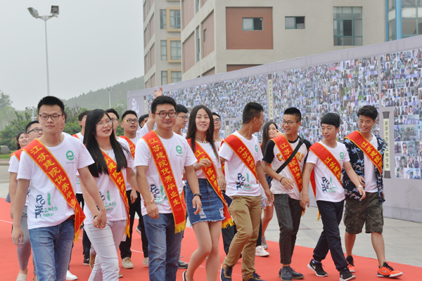 据悉,本届毕业典礼学校党政高度重视,为每一名毕业生发放纪念文化衫,每件文化衫体现出不同二级学院的文化特色;每一名毕业生在象征学校办学历史、长度为37米的照片墙上留下了自己的身影,并将被学校校史馆永久收藏;每一名毕业生走过长度为4134厘米的红地毯,饱含着母校对每4134名毕业学子的殷殷寄语。毕业典礼结束后,全体校领导、干部和教师全体起立,用持续的热烈掌声欢送全体毕业生一一离席启程,毕业典礼场面温馨感人。(学工处 周厚思)