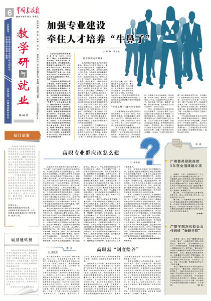 《高等职业教育创新发展行动计划(2015——2018年)》提出,加强高职院校的专业建设,凝练专业方向、改善实训条件、深化教学改革,整体提升专业发展水平,支持建设3000个左右、紧贴产业发展、校企深度合作、社会认可度高的骨干专业。这一行动计划为我国广大高职院校进一步加强专业建设指明了方向、明确了任务。