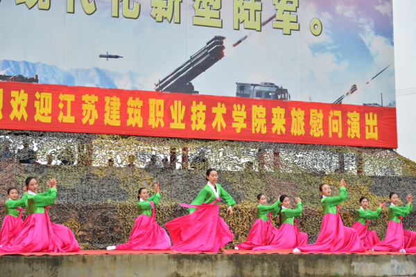 演出在部队官兵慷慨激昂、振奋人心的拉歌声中上演,欢腾跳跃的舞龙舞狮、热情奔放的街舞、温婉优雅的民族舞、青春欢快的歌曲和婉转悠扬的民乐合奏,我校大学生艺术团的同学们用最自信的舞姿和最热烈的情感在舞台上尽情展示青春的活力,为部队官兵带来一场视觉盛宴。驻徐部队领导对我校大学生艺术团前去慰问演出表示了极大的欢迎和感谢,并充分肯定了我校大学生艺术团的文艺展演水平。