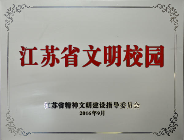 近期,江苏省精神文明建设指导委员会下文表彰2013-2015年度江苏省文明单位。我校获“2013-2015年度江苏省文明校园”称号。这次评选中,江苏省文明办、省教育工委联合下文,将过去省教育系统内“和谐校园”评选,纳入到江苏省文明单位(校园)评选序列中,并在全省教育系统内组织开展“江苏省文明校园”创建活动。