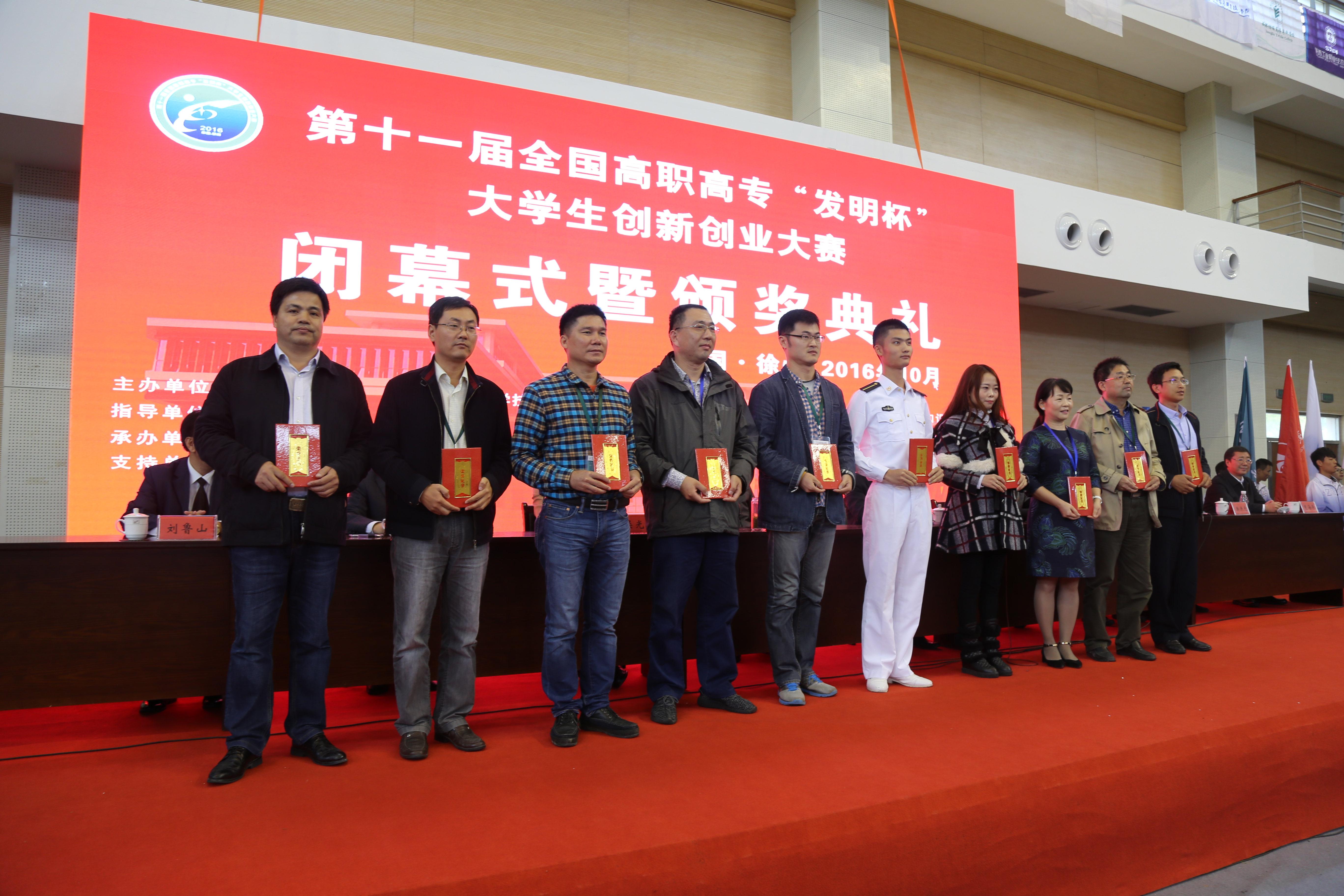 本届大赛共评选720个奖项,其中一等奖116个,二等奖240个,三等奖364个,优秀指导教师170个,46名组织工作先进个人,10个优秀组织奖,许昌职业技术学院等10所学校获得高职高专创新“发明杯”教育基地的称号。其中,我校有17项作品获一等奖、24项作品获二等奖、41项作品获三等奖、9名老师获优秀指导教师奖,学校荣获优级秀组织奖。