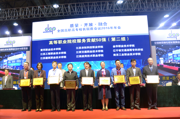 全国高职高专校长联席会议、教育部职业教育与成人教育司策划,上海市教育科学研究院、麦可思研究院编著出版的《2016中国高等职业教育质量年度报告》中,我校被评为“高等职业院校服务贡献50强”。大会闭幕式上,全国高职高专校长联席会议顾问姜大源教授为我校颁发了奖牌。(院办)