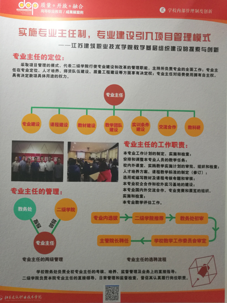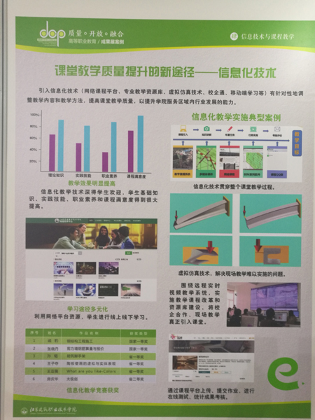 会议设置了教学诊改与管理创新、信息技术与课堂教学、示范回顾与优质校建设、创新创业与人才培养、校企合作与工匠精神等五个分论坛。会议集中展示了高职教育战线在教学工作诊断与改进、学校内部管理制度创新、创新与创业、信息技术与课程教学、国际合作办学、社会服务能力、产教融合与工匠精神、学校文化建设等8个主题253个典型案例。我校选送了6个案例,《课堂教学质量提升的新途径——信息化技术》、《试行“四晒”,助推诊改——华体会体育绩效考核典型案例》、《实施专业主任制,专业建设引入项目管理模式》、《构建“363”创新创业体系,助推“双创”人才培养》、《发挥省级工程中心平台作用,助推地方建筑节能事业发展》等5个案例入选现场典型案例展。