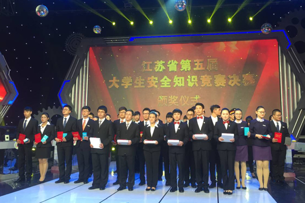 12月10日下午,江苏省第五届大学生安全知识竞赛电视决赛在江苏电视台教育频道演播大厅举行,由我校建筑设计与装饰学院梁倩萍、李晨,经济管理与人文学院刘瑞雪三名同学组成的代表队参赛,与其他参赛队伍激烈角逐,在必答、抢答、视频和问答等环节表现出色,荣获本次竞赛冠军,江苏省委教育工委副书记潘漫为我校代表队颁发证书和奖品。
