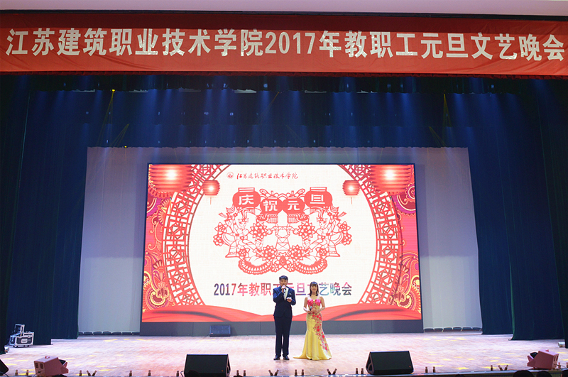 12月30日,我校2017年教职工元旦文艺晚会在会堂隆重举行。党委书记吴光林,院长孙进,党委副书记张登宏,副院长季翔、任留钦、梁惠、曾凡远和全院教职员工欢聚一堂,喜迎新年。来校参加江苏建筑职教集团年会的常务理事们一同观看了演出。