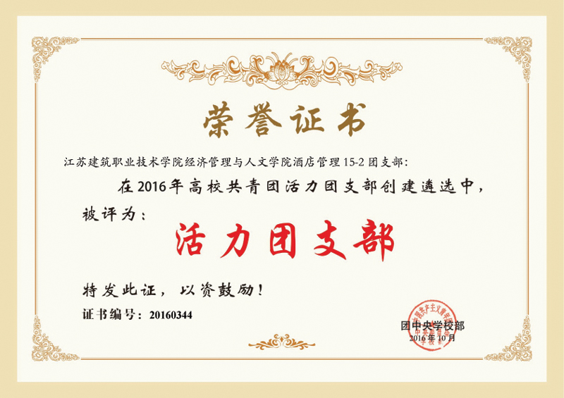 近日,从团中央学校部获悉,我校经管学院酒店管理15-2团支部被评为2016年全国高校共青团“活力团支部”。