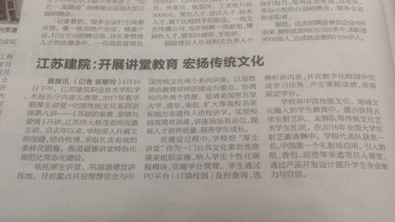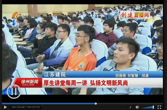 近日,我校开展的一周一期厚生讲堂,积极弘扬传统文化和文明新风,受到徐州电视台、《都市晨报》关注。