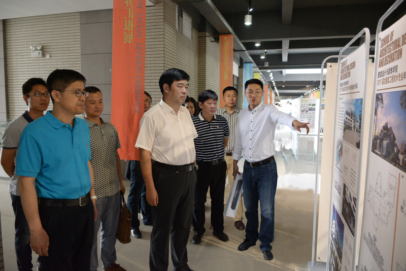 在设计学院领导的陪同下,与会领导和嘉宾观看了汇报展。孙进院长对设计学院举办的专业人才培养汇报展的形式和内容表示肯定,并希望设计学院在多维度、全员全过程、全方位育人方面能够取得系列成果。