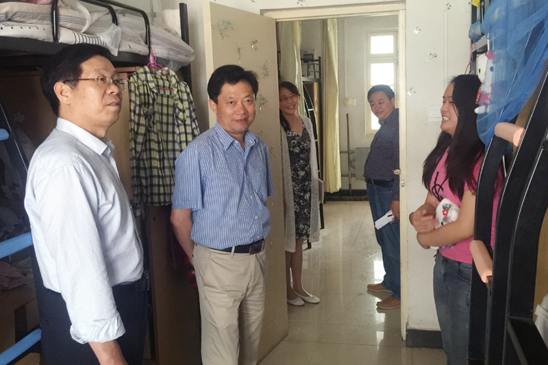 上午9时,吴光林书记、任留钦副院长带领党政办、学工处、公寓中心等部门负责同志走访了毕业生宿舍,与毕业生们亲切交谈,详细询问了他们的毕业实习、毕业设计和工作落实情况。走访过程中,吴光林亲切地询问到:“临近毕业,马上就要离校了,你们对学校还有什么希望和建议?”其中,广告14-2班周倩同学动情地说:“最希望学校能为毕业的同学们多提供相聚的机会。”建工14-3班王铭书同学在校领导走出宿舍时,礼貌地说:“谢谢校领导们的关心!” 同学们简短的话语,体现了他们即将离校时依依不舍之情,也表达了对学校的浓浓情意。