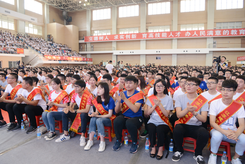 院长孙进代表学校党政对4037名毕业生表示热烈的祝贺,向辛勤培育学生的父母、亲人和老师表示衷心的感谢,并以师长身份寄语全体毕业生要做到人生“三个不忘”:一不忘健身,拥有健康才能成就幸福人生;二不忘尚能,掌握技能才能点亮辉煌人生;三不忘修德,要修担当之心、感恩之心、修坦荡之心,提升品行照耀高尚人生。