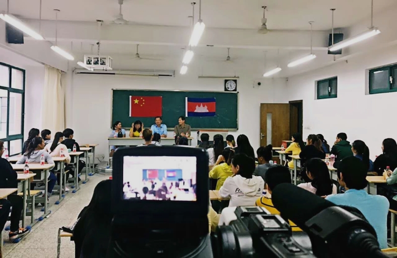 CHUM副校长一行在学校访问期间,还参加了我校2017年新生开学典礼,走进留学生教室听课,与53名柬埔寨留学生座谈交流。