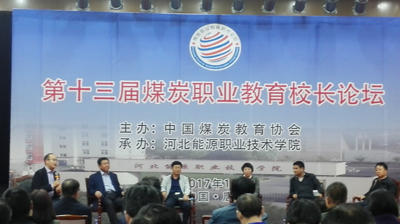 10月26日,由中国煤炭教育协会主办、河北能源职业技术学院承办的第十三届煤炭职业教育校长论坛在河北唐山举行。我校院长沈士德教授应邀参加大会并做主题发言,他结合学校十三五规划,以创建优质高职校为目标,着重介绍了学校以产教融合为主线,强化内涵建设的全方位推进校园形态和办学形态提档升级的做法。