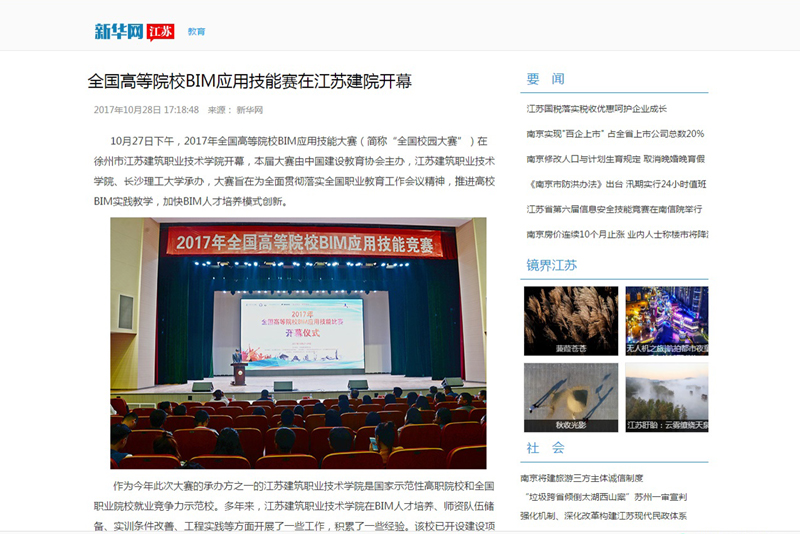 新华网:全国高等院校BIM应用技能赛在江苏建院开幕
