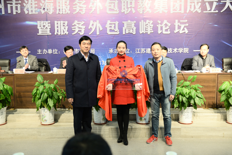 12月15日,徐州市淮海服务外包职教集团成立大会暨服务外包高峰论坛在我校图书馆报告厅举办。我校党委书记孙进、院长沈士德、副院长曾凡远,徐州市教育局副局长李清、徐州市商贸局副局长周李明、江苏省服务外包协会副会长杨亚兵出席大会,徐州市民政局、徐州市服务外包协会相关处室负责同志以及淮海经济区兄弟院校领导、徐州各中职学校领导、合作企业代表,相关专业教师和学生代表200余人参加成立大会。孙进书记与李清副局长共同为职教集团揭牌。曾凡远主持成立大会。