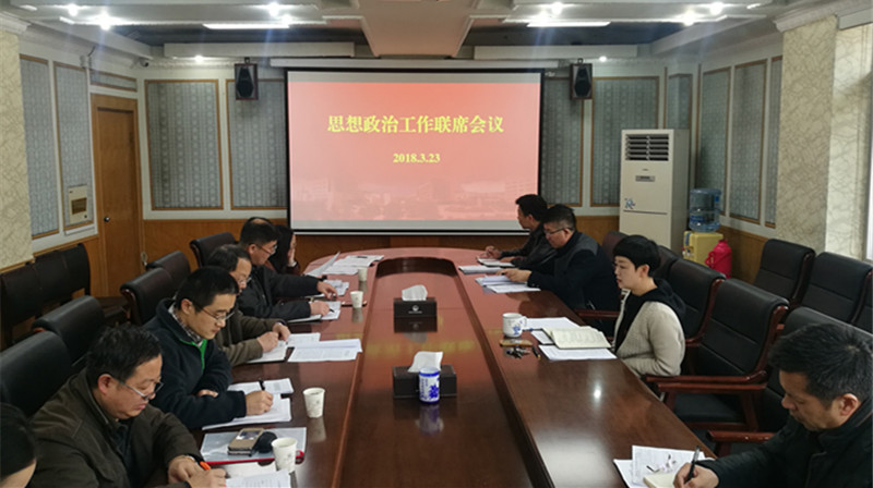 3月23日下午,我校思想政治工作联席会议在第二会议室召开,专题学习教育部党组《高校思想政治工作质量提升工程实施纲要》文件精神,研讨如何进一步加强学校思想政治工作。党委副书记梁惠主持会议并作讲话。组织部、宣传部、党政办、纪委办、教务处、人事处、科技与校企合作处、学工处、保卫处、工会、团委、马克思主义学院等相关单位负责人参加会议。