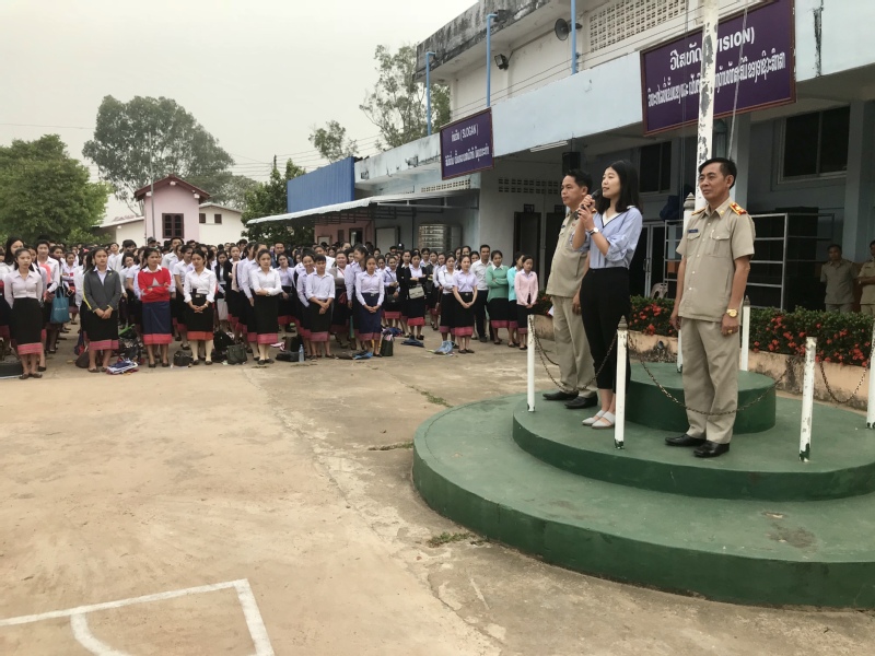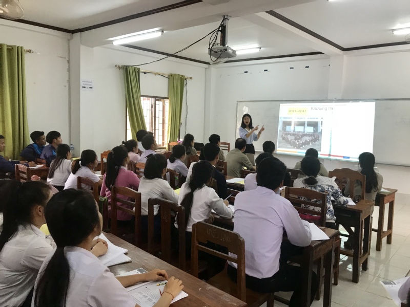 老挝万象省技术学院专门为本期语言班举行了简短的开班仪式。副校长通萨代表学校对张雨婷老师表示了热烈的欢迎,并向全体师生介绍了两校的合作历史和发展前景。通萨说,2月初学校宣布有江苏建筑学院的老师来上汉语课,报名要求参加本期汉语培训课程的人数就远远超过了计划预期,为保证教学效果,校领导充分调研仔细研讨后,经过三轮选拔确定35名电气、会计、营销等专业的大二学生参与汉语课程,同期也从报名的教师中选拔了20名参加该期的课程培训。该期培训设两个班,20位专任教师班,35位在校学生班。通崂校长对参与汉语培训的师生提了三点要求,希望全体师生能积极参与,认真研习,努力提高汉语水平,为将来到中国留学及毕业就业打好坚实的语言基础,同时寄语这批老挝学生和老师能够成为万象省技术学院和建筑学院进一步加深合作的桥梁。