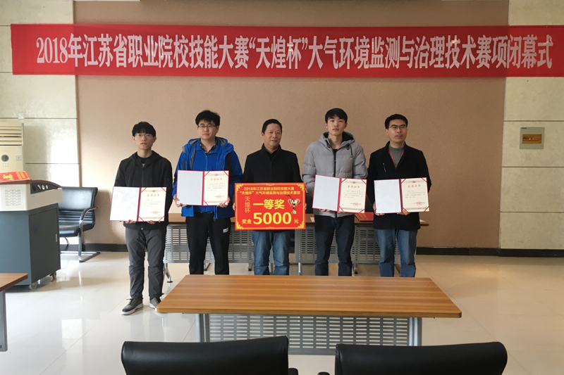 3月23日至25日,2018年江苏省职业院校技能大赛“天煌杯”大气环境监测与治理技术赛项在我校举办。由建筑设备与市政工程学院教师袁永军和张刚指导、柏元超和董浩同学参加的我校代表队,获得赛项一等奖。