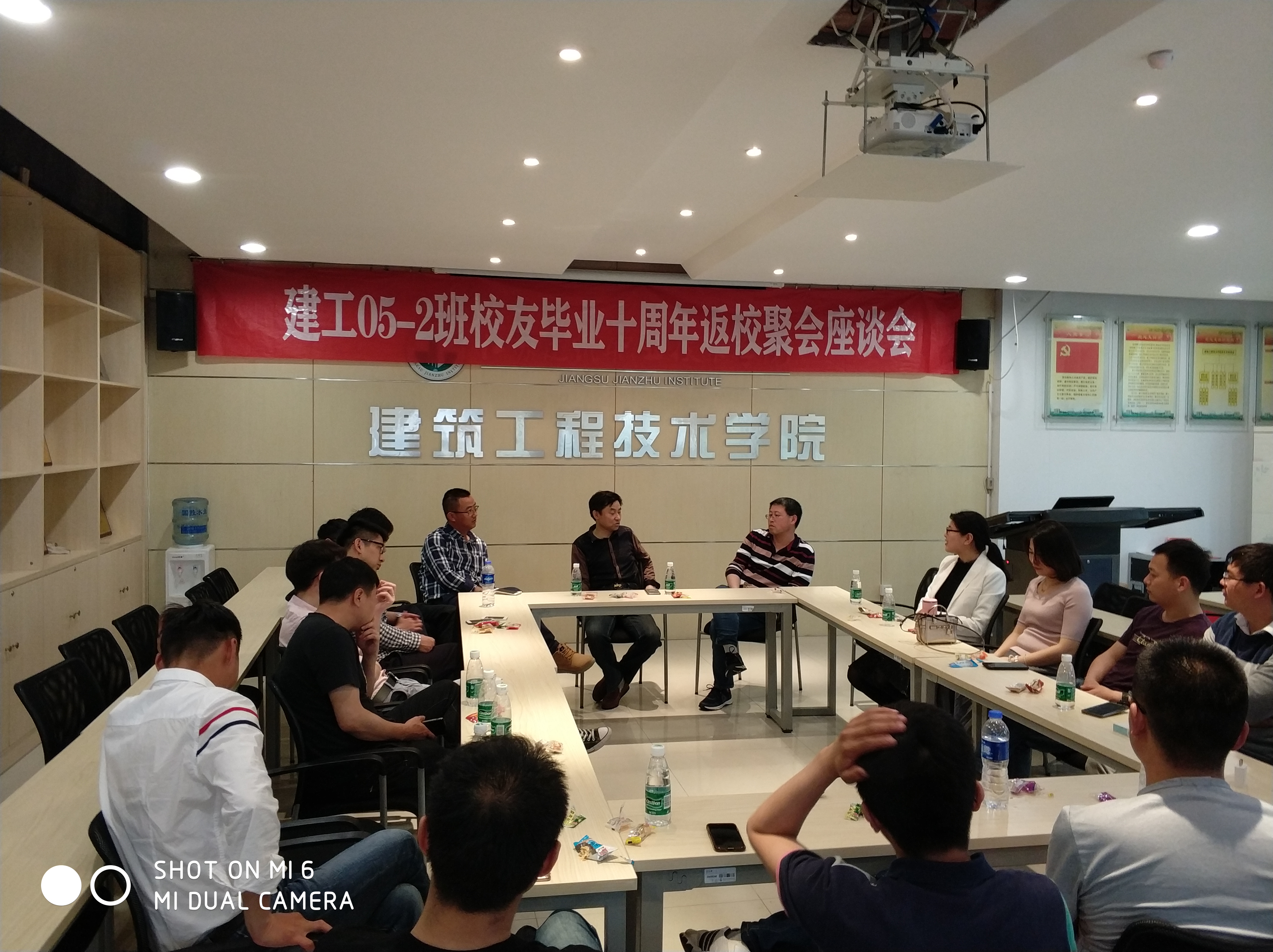 4月29日,建工学院2005级建筑工程技术专业05-2班毕业生返校举行了毕业十年感恩聚会活动。学院陈年和院长、孙武副院长、班主任焦文俊、李锐老师出席了活动。毕业生们首先参观了学校校园文化建设、建筑技术馆、图书馆,他们纷纷感慨学校的美丽变化和实力提高,相信学校的未来会越来越美好。下午2时,学院的领导与毕业生们在利亚楼建工学院会议室举行了交流会。