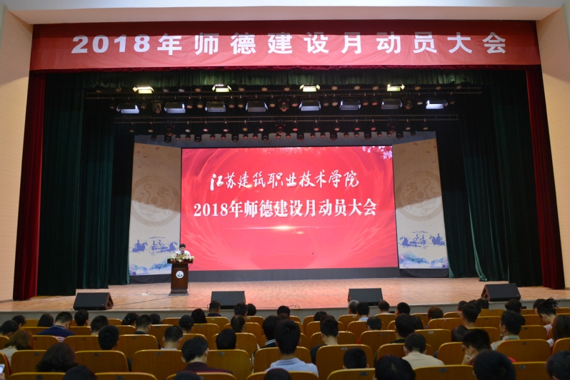 5月10日下午,我校在会堂隆重召开2018年师德建设月活动动员大会。校领导沈士德、梁惠、魏勇、曾凡远、刘海波,全校教职员工和部分班级学生代表参加了动员大会。